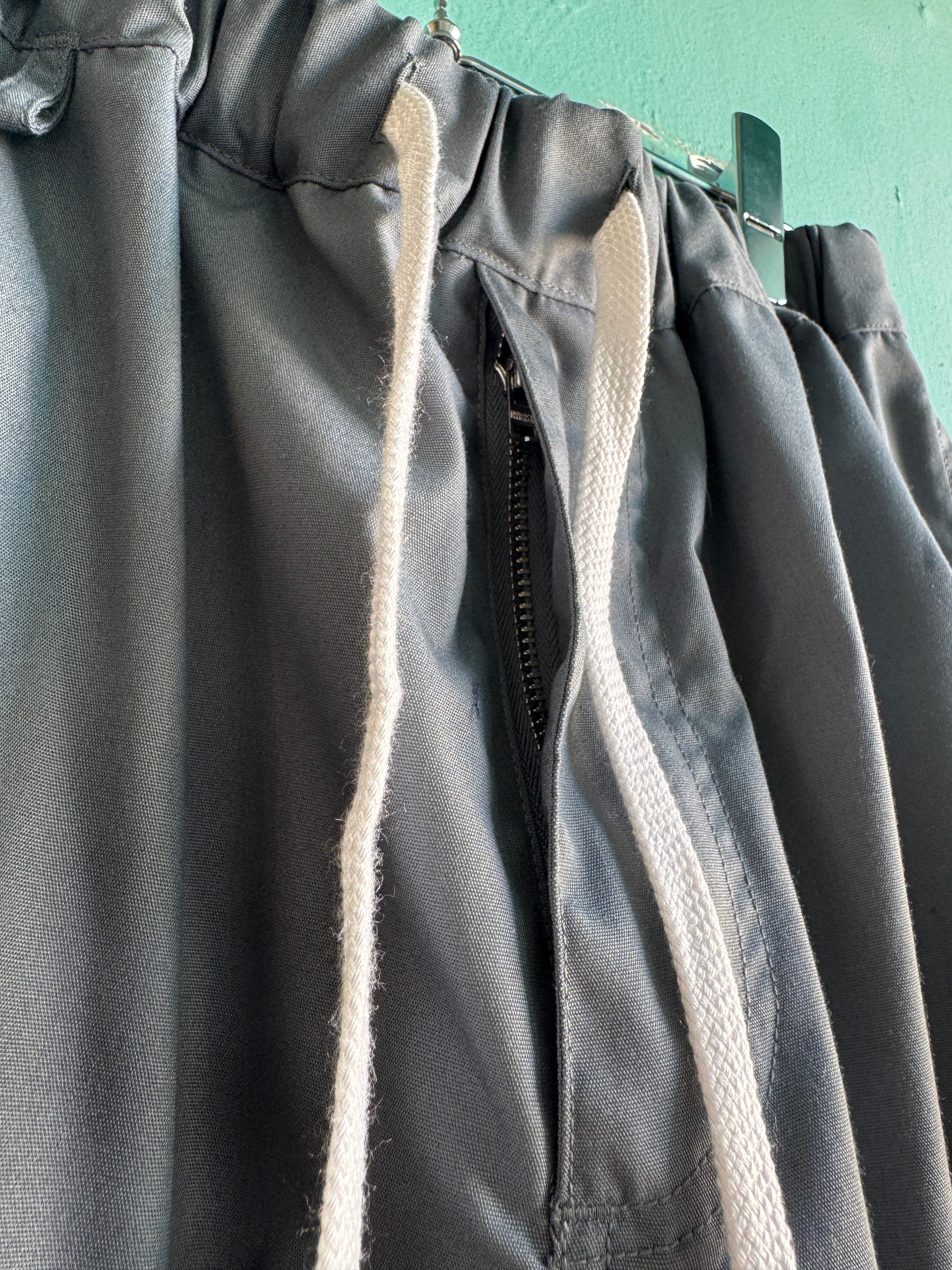 ウエストコードはシューレースをイメージした太紐を使用し、パンツに合わせたカラーを採用